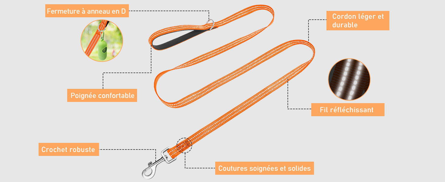 - 【Reflective Lines & D-Ring Clasp】Our dog training lead features two high quality reflective lines that improve visibility in low light. You can observe your dog’s tracks in time and make sure your dog is safer in the darkness. We also offer added value. The dog leash has a D-ring that can be used to hang something. Very affordable dog leash.